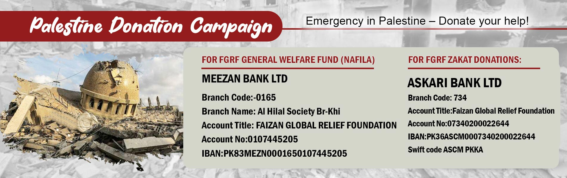فیضان گلوبل ریلیف فاؤنڈیشن دعوت اسلامی کے زیر انتظام انسانی خدمت پر مشتمل فلاح وبہود کا وہ اہم شعبہ ہے جس کا مقصد شریعت کےبتائے ہوئے طریقہ کے مطابق قدرتی آفتوں سے متاثر افراد کی فلاح وبہود کے ساتھ خوراک ، گھر،تعلیم ، روزگار، علاج معالجہ ، معزور بچوں کی نگہداشت، ملک وقو م کی خدمت کےلئے پیشہ ورانہ صلاحتیوں کےحامل افرادکی تیاری اور ماحولیاتی آلودگی سے بچاؤ کےلئے ہرممکنہ کوششیں کرناہے۔ایف جی آر ایف اپنے عظیم مقصد کےحصول کےلئے اتبدائی طور پر چاربنیاد سیکٹر میں اپنی خدمات پیش کررہا ہے ۔