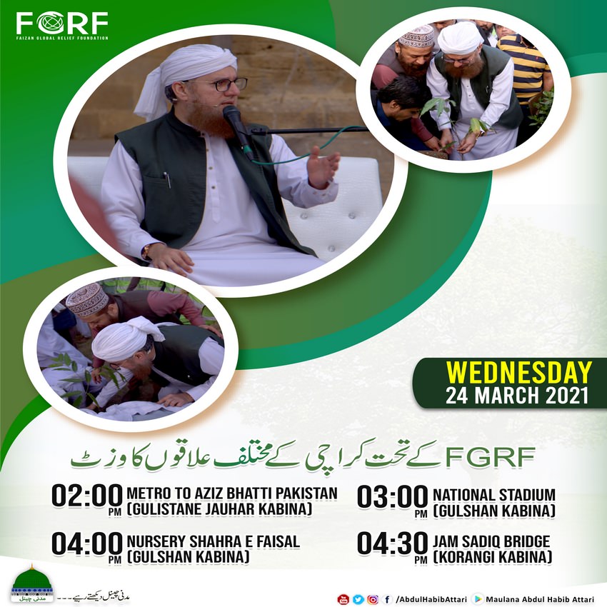 فیضان گلوبل ریلیف فاؤنڈیشن دعوت اسلامی کے زیر انتظام انسانی خدمت پر مشتمل فلاح وبہود کا وہ اہم شعبہ ہے جس کا مقصد شریعت کےبتائے ہوئے طریقہ کے مطابق قدرتی آفتوں سے متاثر افراد کی فلاح وبہود کے ساتھ خوراک ، گھر،تعلیم ، روزگار، علاج معالجہ ، معزور بچوں کی نگہداشت، ملک وقو م کی خدمت کےلئے پیشہ ورانہ صلاحتیوں کےحامل افرادکی تیاری اور ماحولیاتی آلودگی سے بچاؤ کےلئے ہرممکنہ کوششیں کرناہے۔ایف جی آر ایف اپنے عظیم مقصد کےحصول کےلئے اتبدائی طور پر چاربنیاد سیکٹر میں اپنی خدمات پیش کررہا ہے ۔
